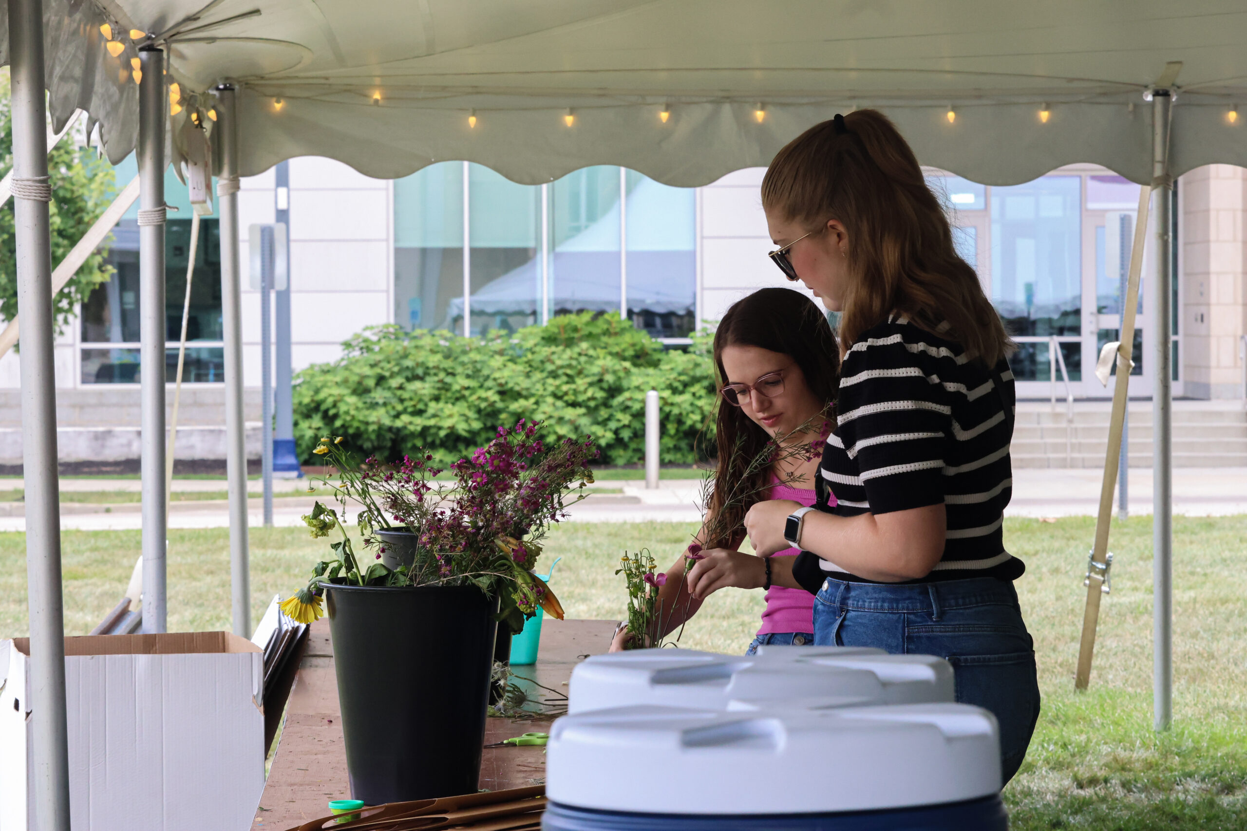 Students have the opportunity to meet their classmates and make flower bouquets for their new rooms. Photo by Jada Gangazha.