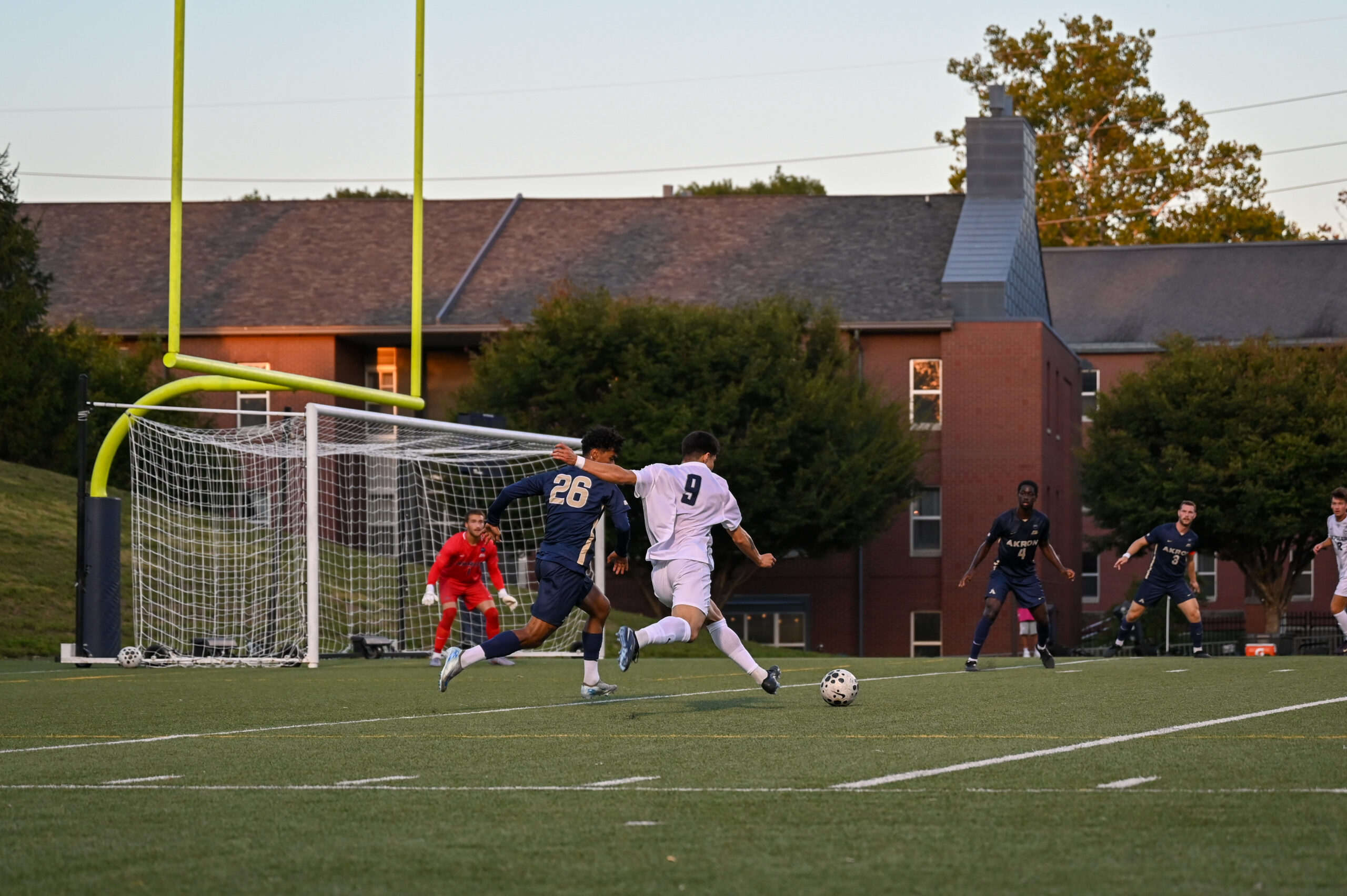 Men’s soccer goes for the goal during their 1-0 loss vs. Akron. Photo by Darcy Leber.