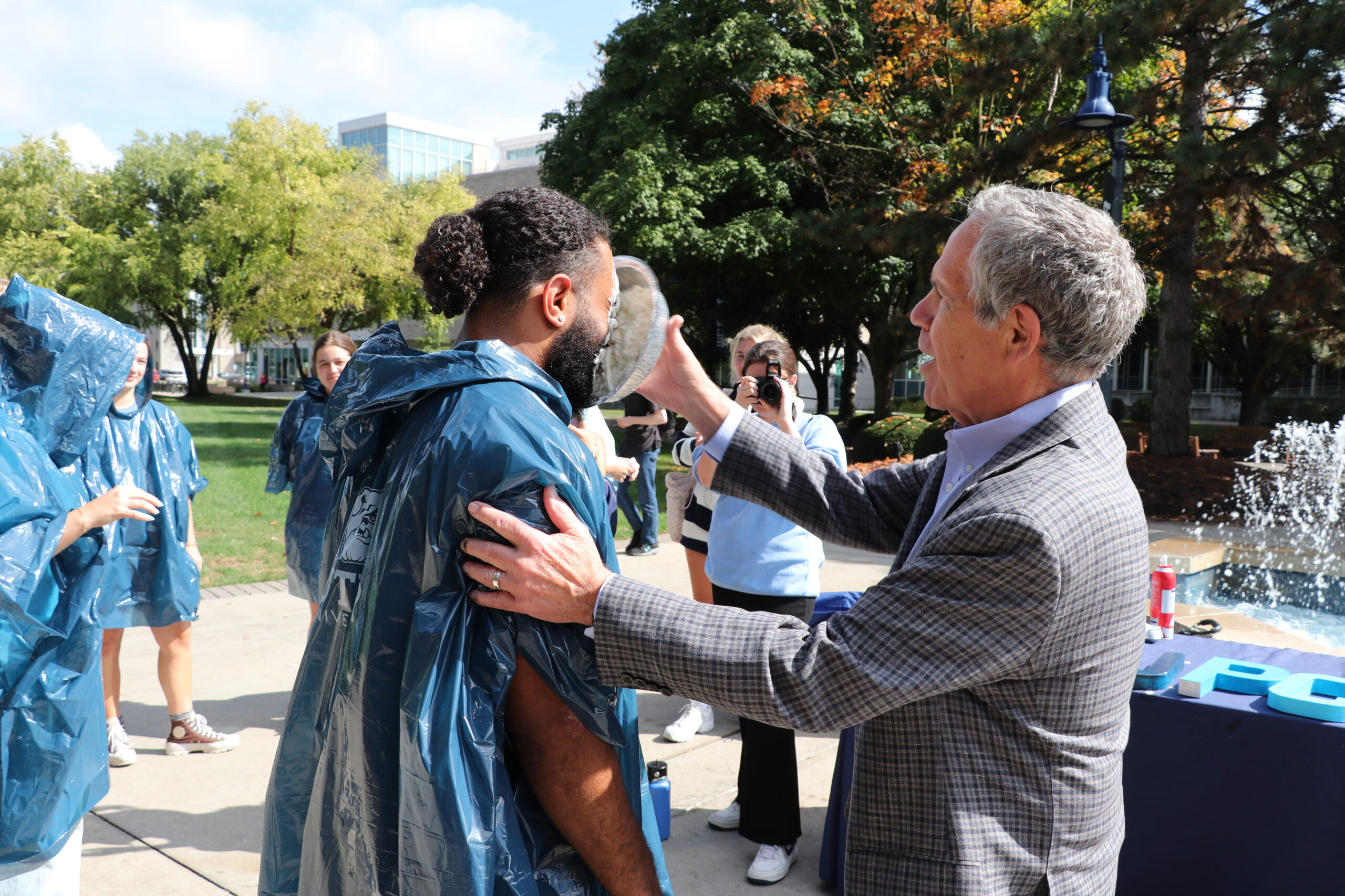 President Danko pies the football team for a Butler University Dance Marathon fundraiser. Photo by Jonathan Wang.
