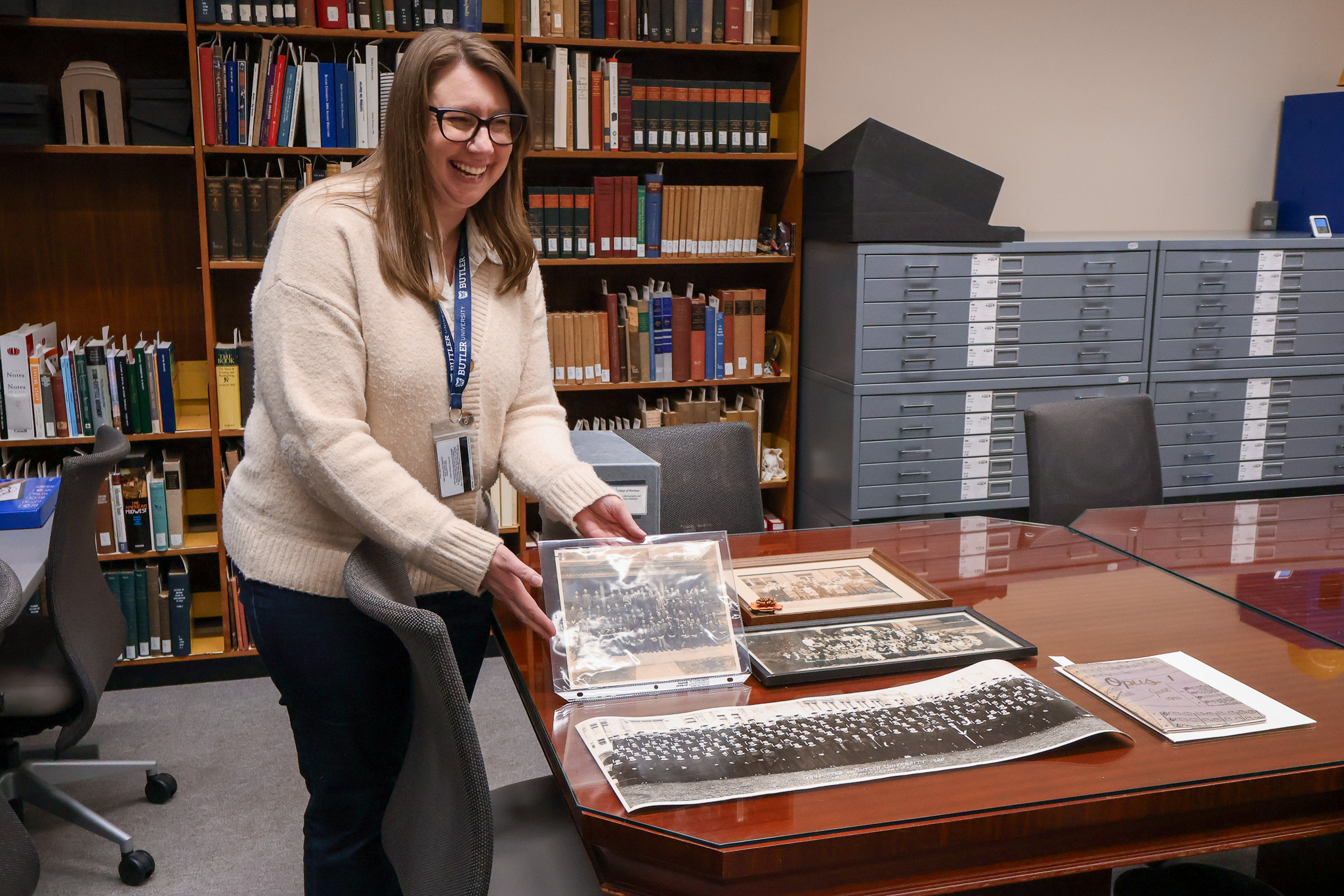 Head of Special Collections Annie Benefiel shows off photographs inside the archives. Photo by Natalie Goo.