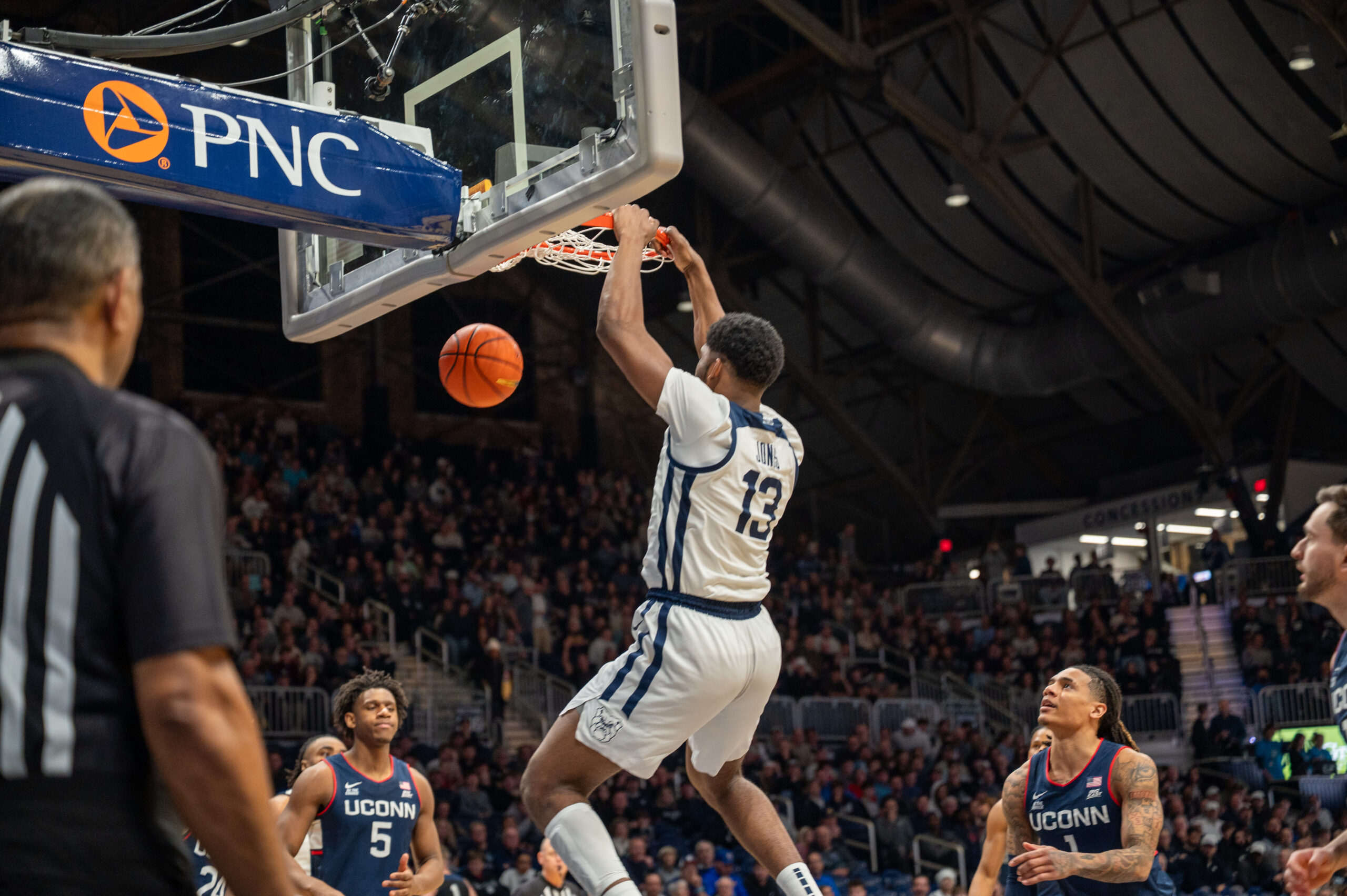 Coming out of the locker room, the Huskies got out to a 51-43 advantage as junior guard Finley Bizjack continued to struggle to get any shots up after making just one of his team-low two attempts from the field in the first period. However, the Big East’s leading scorer was able to use the added defensive attention and dish out five assists before exiting the game late with an apparent wrist injury.
