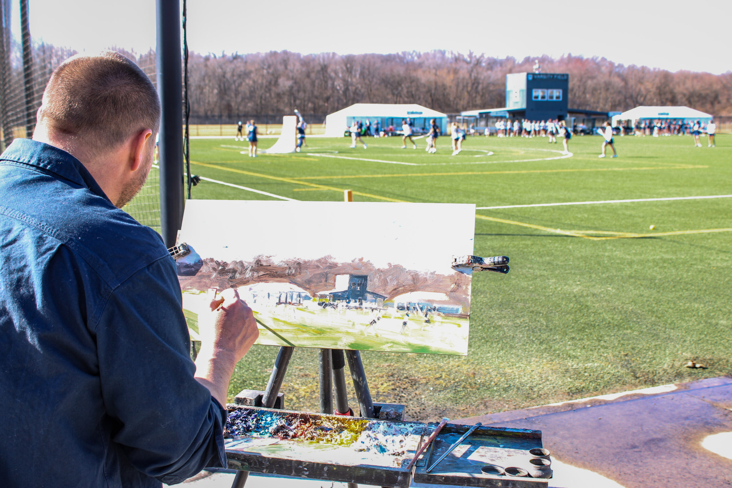 Justin Vining has been live painting sporting events for over a decade. Photo by Bryan Malkowski.