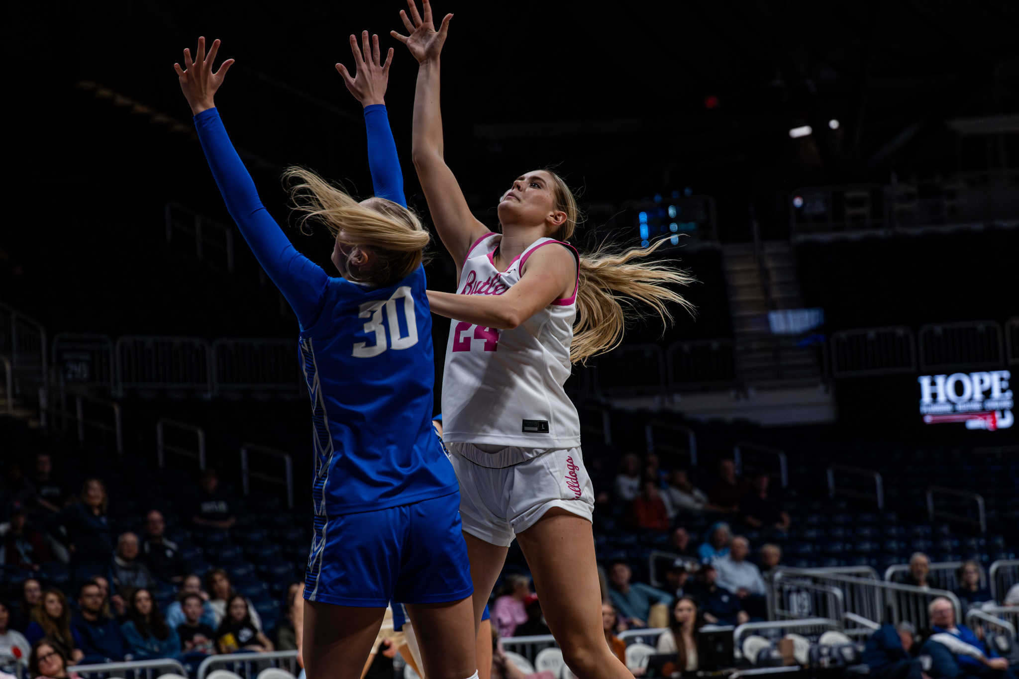 The first quarter was a defensive show, as both teams were held to low scores. Sophomore guard McKenna Johnson was the dominant force behind Butler’s offense in the quarter, scoring eight of the Bulldogs’ 12 points. The guard went 3-of-4 from the field and nailed two consecutive three-pointers.