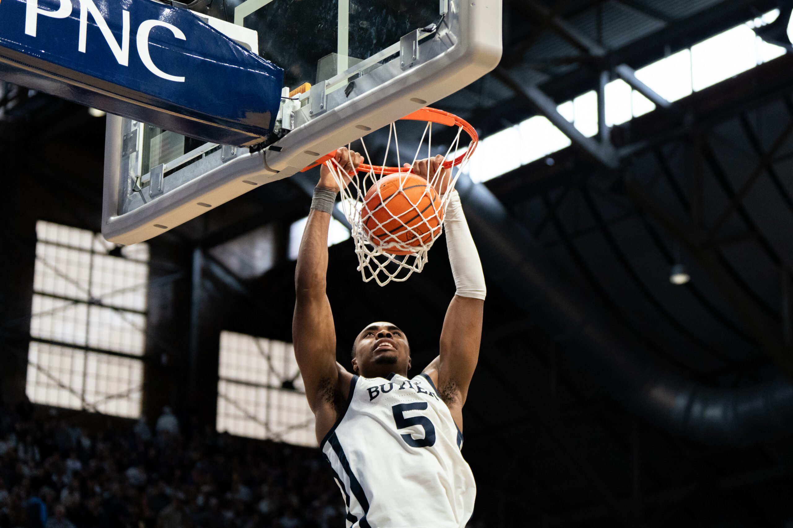 Graduate forward Michael Ajayi leads Butler in rebounding and is second on the team in scoring. Photo by Andrew Buckley.