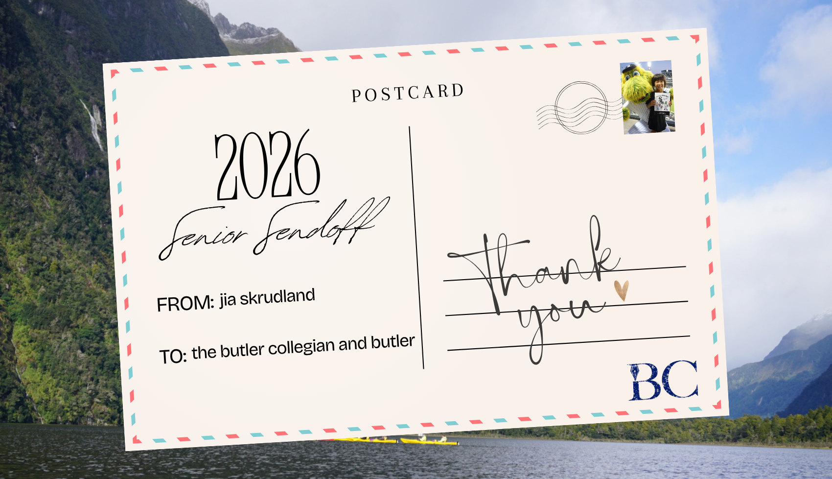 Thank you to Butler for giving me the opportunity to find my home away from home.